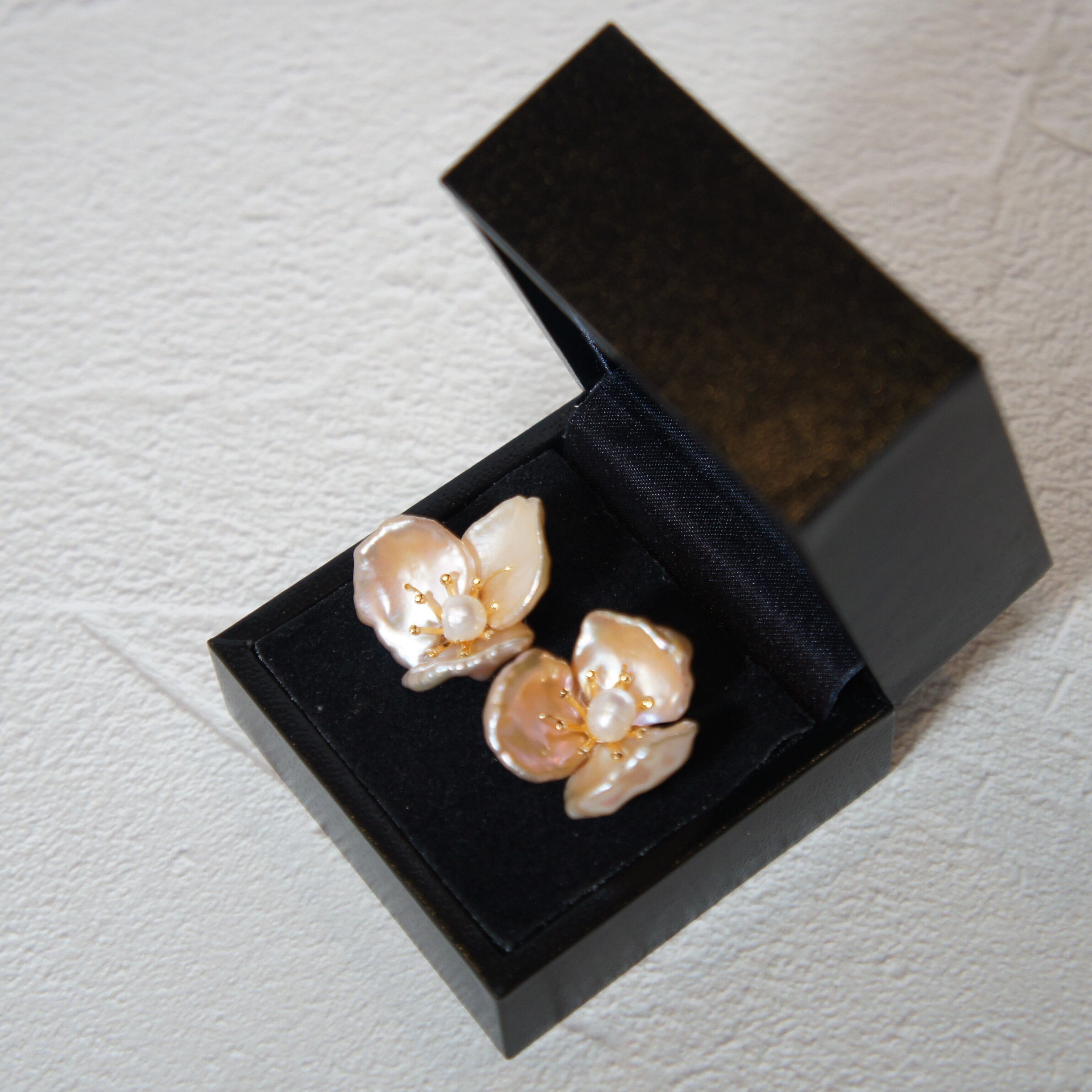 上質な天然ケシ(バロック)パールのお花のピアスです。