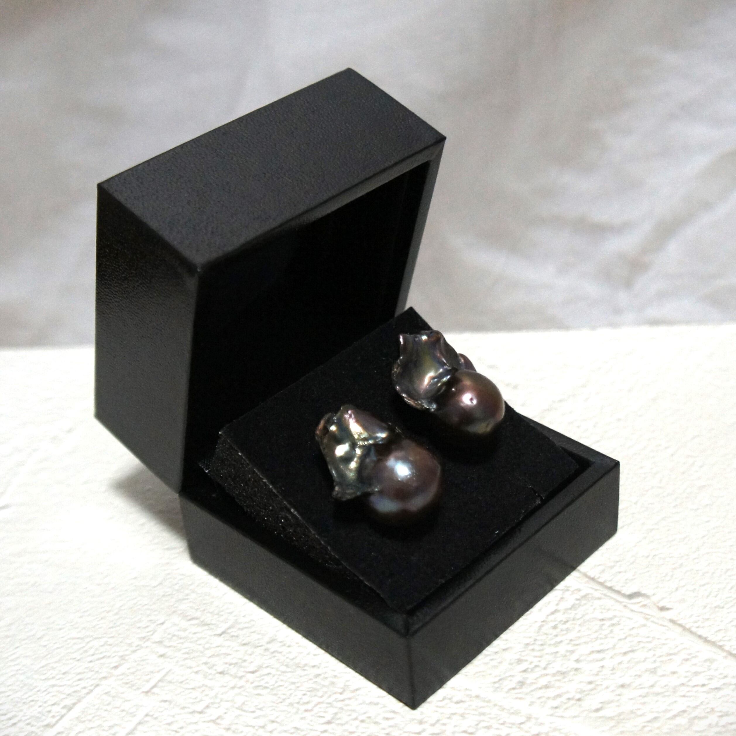 バロックパール ピーコック ピアス ブラック シルバーポスト 本真珠 金属アレルギー対応 #085B