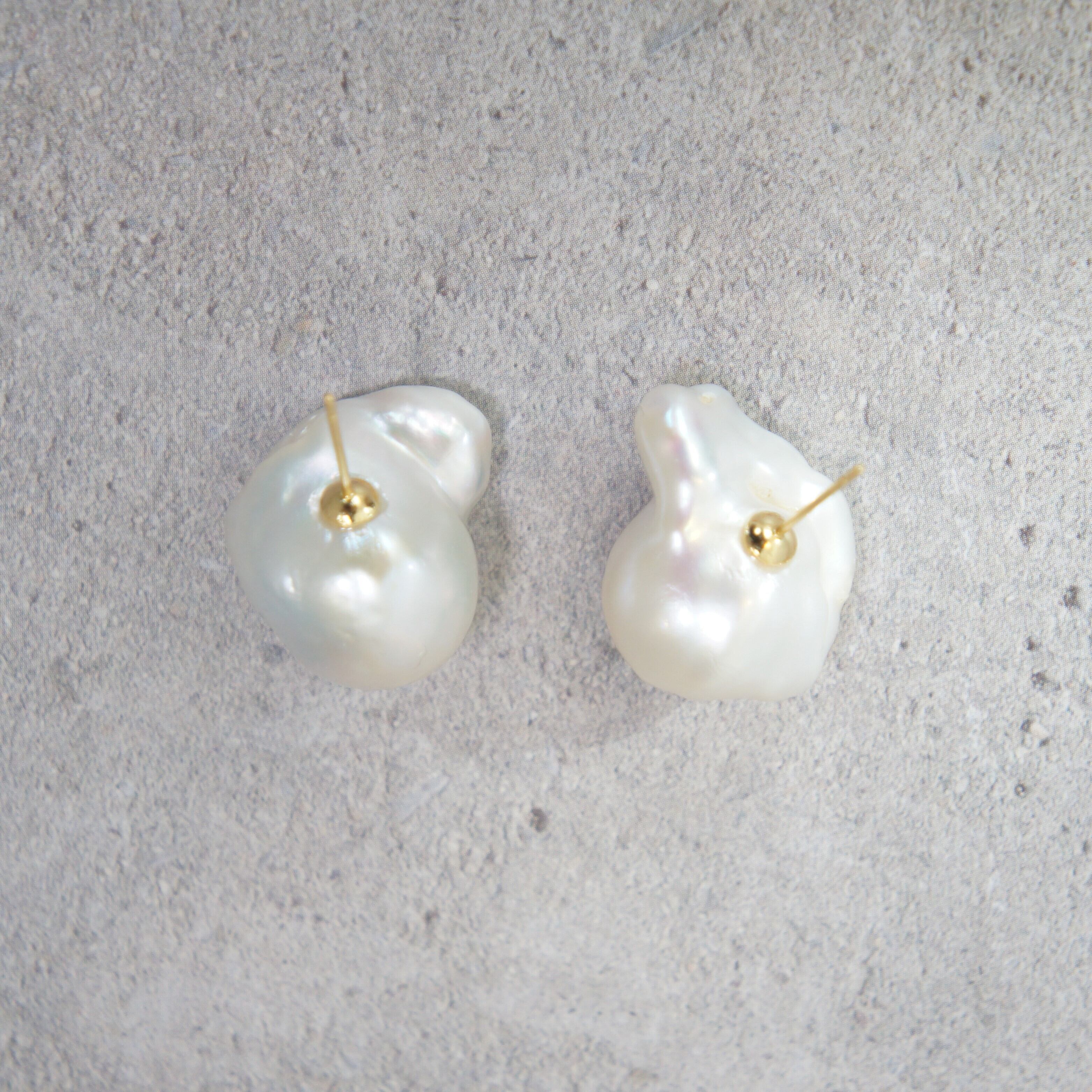 バロックパール ホワイト ピアス ゴールドポスト 本真珠 金属アレルギー対応 #064B