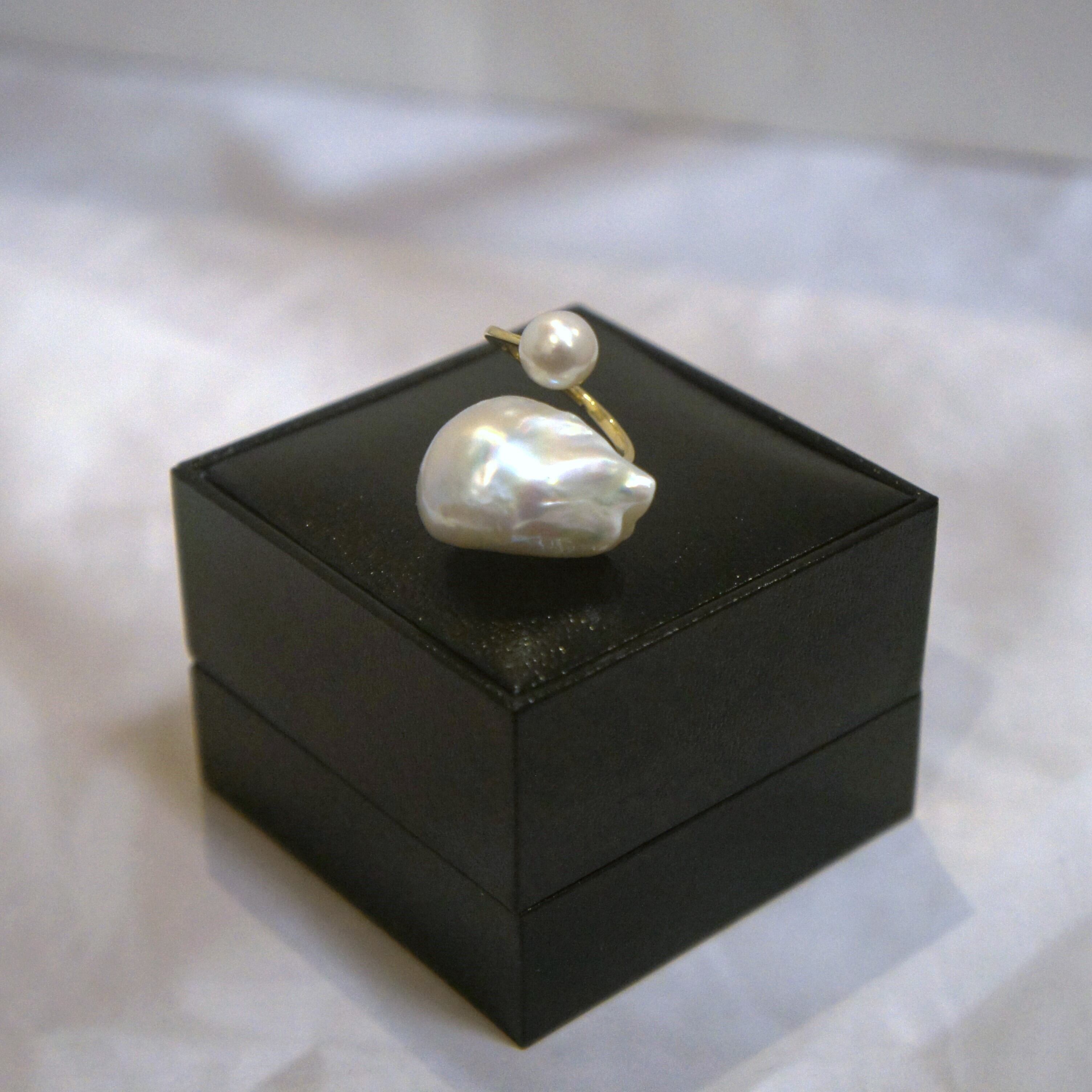 高級感のあるバロックパールのゴールドリングの指輪です。